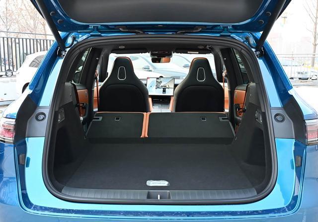 车身尺寸方面,问界M6的长宽高为4960*1985*1736mm,轴距为2950mm,定位于中大型SUV。由于问界M6有着近2米的车宽和近3米的轴距,且该车还全系采用大五座的座椅布局,所以车内不论是乘坐空间还是后备厢的载物空间都是比较宽敞的。此外,新车的后排座椅按比例放倒后,椅背能够与后备厢几乎形成纯平,装载一些大件物品比较便利的同时外出游玩也能够当床车使用。