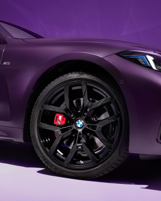 侧面造型方面,双门版和四门版都是溜背式造型,有着浓浓的轿跑风格,敞篷版是基于双门版打造的,风格更显优雅;轮毂采用了熏黑的双五幅式造型,分风格比较大气。限量版车型提供磨砂紫与安格尔西赛道绿两款个性化定制特别涂装,还分别搭配了高级工艺Sensatec黑色和火山红内饰。