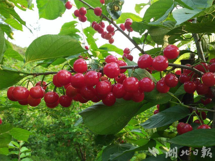 房县樱桃素有"早春第一果"的美誉,以其果大色红、酸甜适口而闻名。房县城关镇八里村是房县樱桃的核心产区,拥有百余年的樱桃种植历史,农户世代传承种植技艺。近年来,房县通过品种革新、科技赋能、农旅融合,樱桃种植面积突破万亩,年综合产值超5000万元,带动周边近万人就业,农民户均年增收超6000元。2017年房县樱桃被农业农村部评定为国家地理标志产品。2021年,“八里旺"樱桃品种经湖北省林木品种审定委员会审定,获得"林木良种证”,果实大小均匀、颜色鲜红、酸甜适度,品质在同类产品中十分出众。当地已构建起"种植、加工、文旅"全产业链,让小樱桃成就了乡村振兴的大产业。