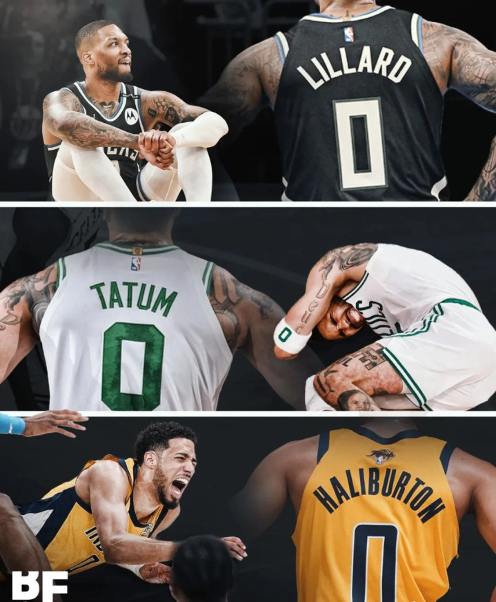 鹈鹕球星默里(右跟腱撕裂)、雄鹿球星利拉德(左跟腱撕裂)、绿凯球星塔图姆(右跟腱断裂)、步行者前锋以赛亚-杰克逊(右跟腱撕裂)、热火后卫德鲁-史密斯(左跟腱断裂)、步行者中锋怀斯曼(左跟腱断裂)和步行者球星哈利伯顿(右跟腱撕裂)。